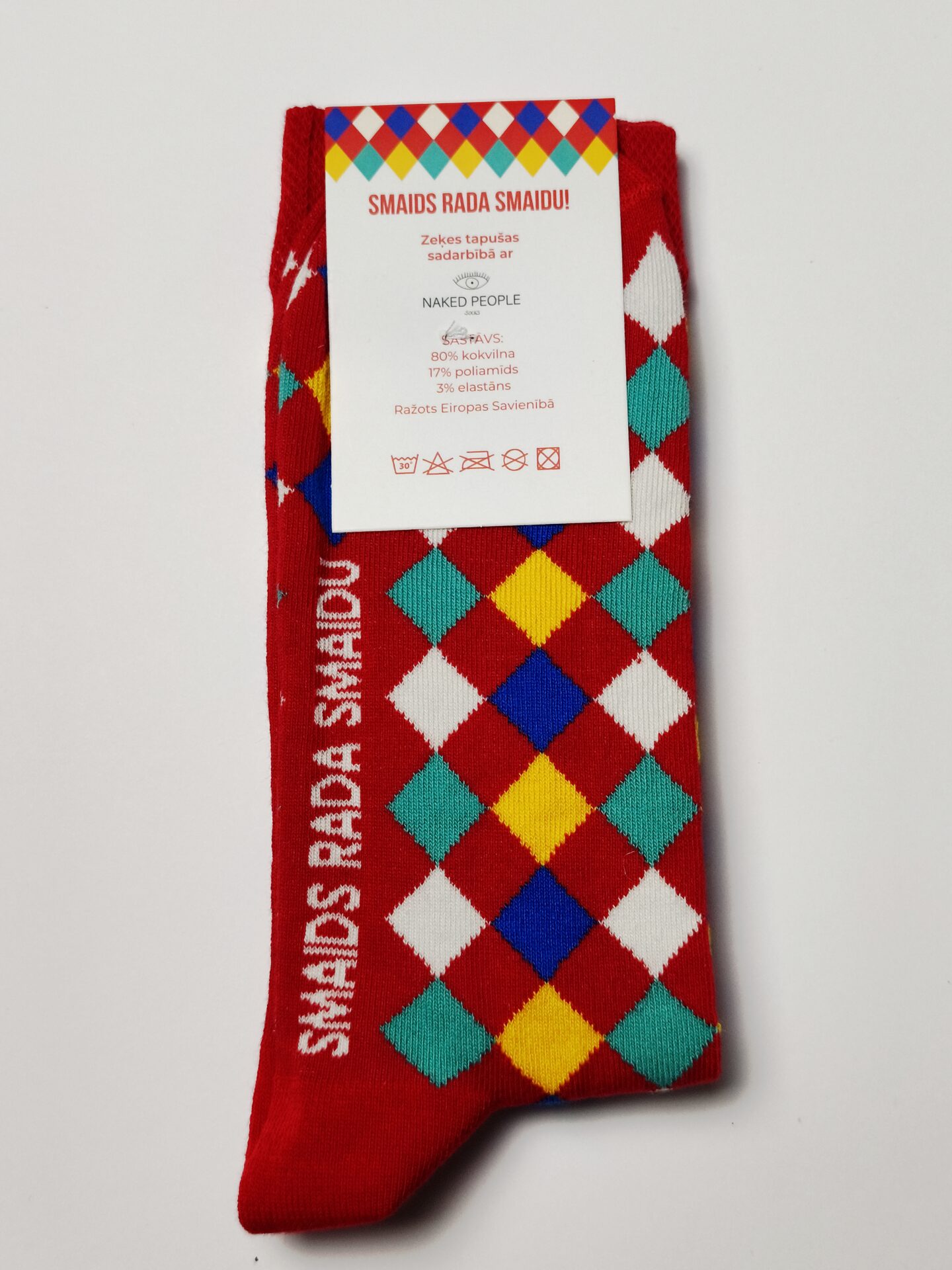 Zeķes tapušas sadarbībā ar Latvijas zīmolu Naked People socks, kas piedāvā Latvijā radītas dizaina zeķes.
